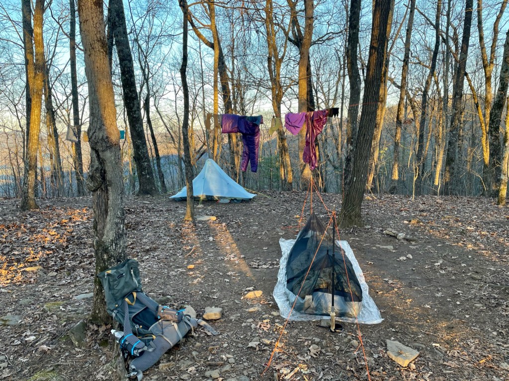 Day 4 turned out to be my biggest mileage day to date. I’d planned to camp near Whitley Gap (which would have been a 15 mile day), but about a mile before reaching the spur trail that would take me to Whitley Gap, I encountered a pair of flip floppers (thru hikers that don’t hike both halves of the trail sequentially – in this case, they’d already hiked southbound from Maine to Virginia, and were now hiking northbound from Georgia to that midpoint to complete their thru) named Samwise and Luna. They cautioned me against staying at Whitley Gap, and although they were very gentle in this suggestion, their level of experience gave their words some added weight in my mind. I soon saw why they’d grinned at my plan – the Whitley Gap shelter was a mile and a half off the trail! This meant, round trip, camping there would have added three miles to my trip, but not put me any closer to Maine. The next shelter (Low Gap) was only an additional four miles, so I pressed on and arrived at camp as the sun was setting.